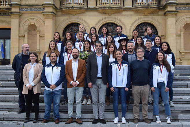 La Diputación Foral de Gipuzkoa y el Ayuntamiento de Donostia homenajearon ayer por la tarde al equipo de hockey hierba femenino de la Real Sociedad, tras lograr ser subcampeonas de Europa.