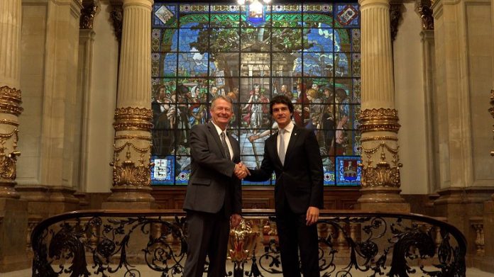 Astelehenean Bizkaiko Ahaldun Nagusiak, Unai Rementeriak, Brad Little Idahoko gobernadoreari harrera egin zion Foru Jauregian.