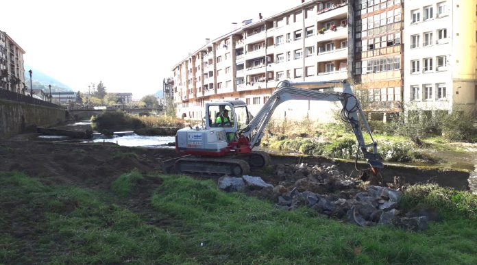 URA demuele y retira el muro del Cascajal, de 28 metros de largo y 1,5 m de alto, construido en pleno cauce del Cadagua a su paso por el casco urbano de Balmaseda; a unos 100 metros aguas arriba del puente que está junto a los juzgados y en la margen derecha.