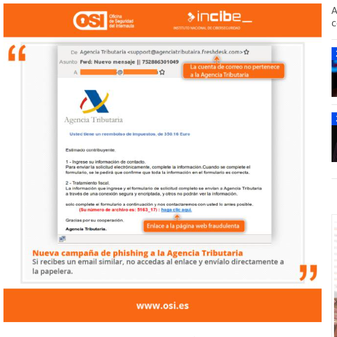 La Oficina de Seguridad del Internauta (OSI) ha detectado una campaña de envío de correos electrónicos que suplantan la identidad de la Agencia Tributaria con el fin de sustraer los datos personales y la numeración de tarjetas de crédito de la víctima en cuestión. Realmente el correo se envía desde una cuenta no relacionada con la Agencia Tributaria, […]