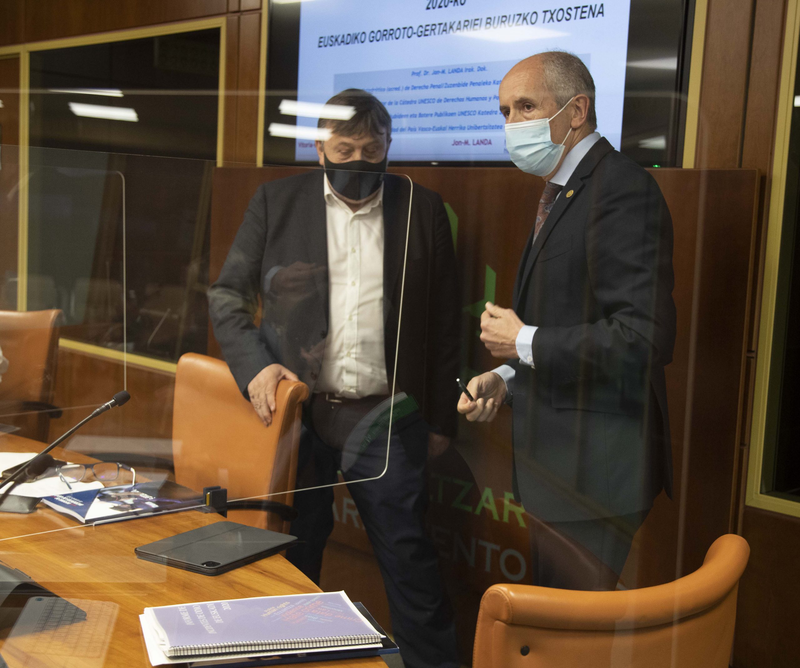 Josu Erkoreka lehenengo lehendakariorde eta Segurtasuneko sailburua gaur goizean agertu da Eusko Legebiltzarraren aurrera, berak eskatuta, Euskadiko Gorroto Gertakariei buruzko 2020ko Txostena aurkeztera. Dokumentua UPV/EHUko Giza Eskubideen eta Botere Publikoen Katedrako Jon Mirena Landak eta Enara Garrok zuzenduta eta koordinatuta egin da.