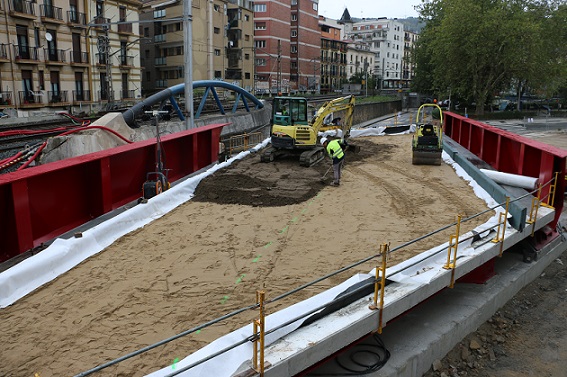 Duela egun batzuetatik hona, zubi berriaren egitura metalikoa inguruan mihiztatuz joan da, eta zubian behin betiko kokatzeari ekingo zaio. Hau da, egitura irristatu egingo da patinen eta katuen bidez, muntaketa-gunean dagoen lekutik trenbideen oinarri izango den lekura. Hori dela eta, trenen zirkulazioa eten egin behar da ostiral gauetik urriaren 13ra arte.