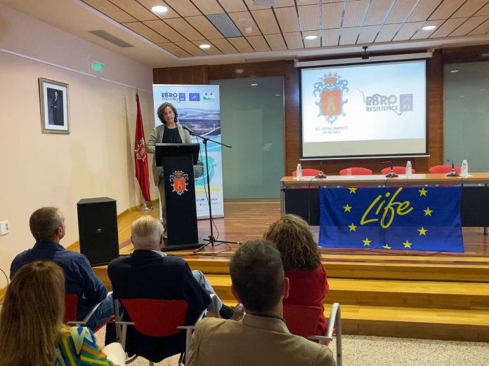 Errioxako Alfaro herrian egindako ekitaldian, Trantsizio Ekologiko eta Erronka Demografikorako Ministerioko Ingurumeneko Estatu-idazkaria den Hugo Moranek eta Nafarroako, Errioxako eta Aragoiko Gobernuetako arduradunek LIFE Ebro Resilience proiektua aurkeztu dute gaur goizean.