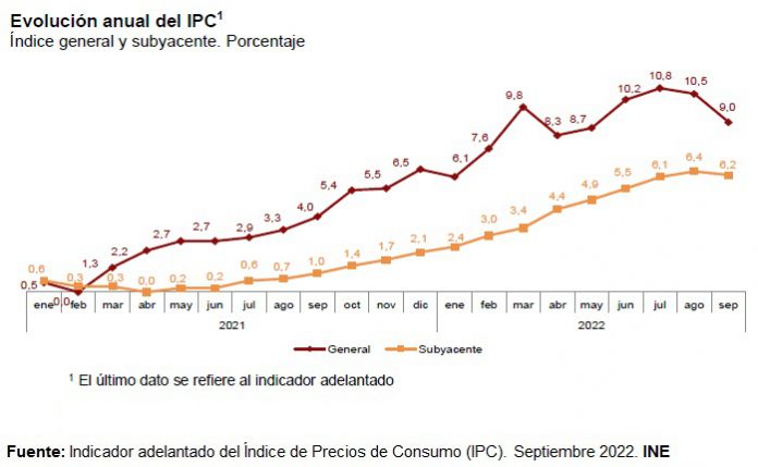 La entrada El IPC desciende al 9 % en septiembre se publicó primero en BizkaiaGaur.