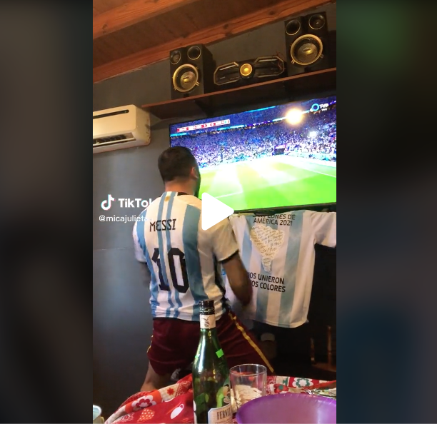 La celebración del Mundial de Qatar está siendo una fuente incesable de vídeos virales. El que recogemos hoy, publicado por la usuaria de TikTok @micajulietaa, muestra como uno de los chicos que está viendo el partido disputado entre Argentina y México situado en frente del televisor enloquece después del gol de Messi. El joven lo celebra con tanta pasión que uno de sus rápidos movimientos de brazo acaba impactando en el dispositivo, que se queda totalmente en negro, además de tirar el decodificador y otros elementos que había encima del mueble.