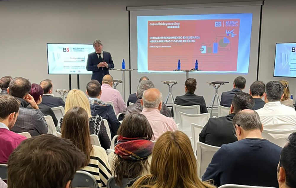 BIC Bizkaia Ezkerraldea ha reunido, en el edificio Ilgner, a un gran número de profesionales, que han tomado parte en la nueva edición del Casual Friday Meeting, para hablar y debatir sobre intraemprendimiento en Euskadi.