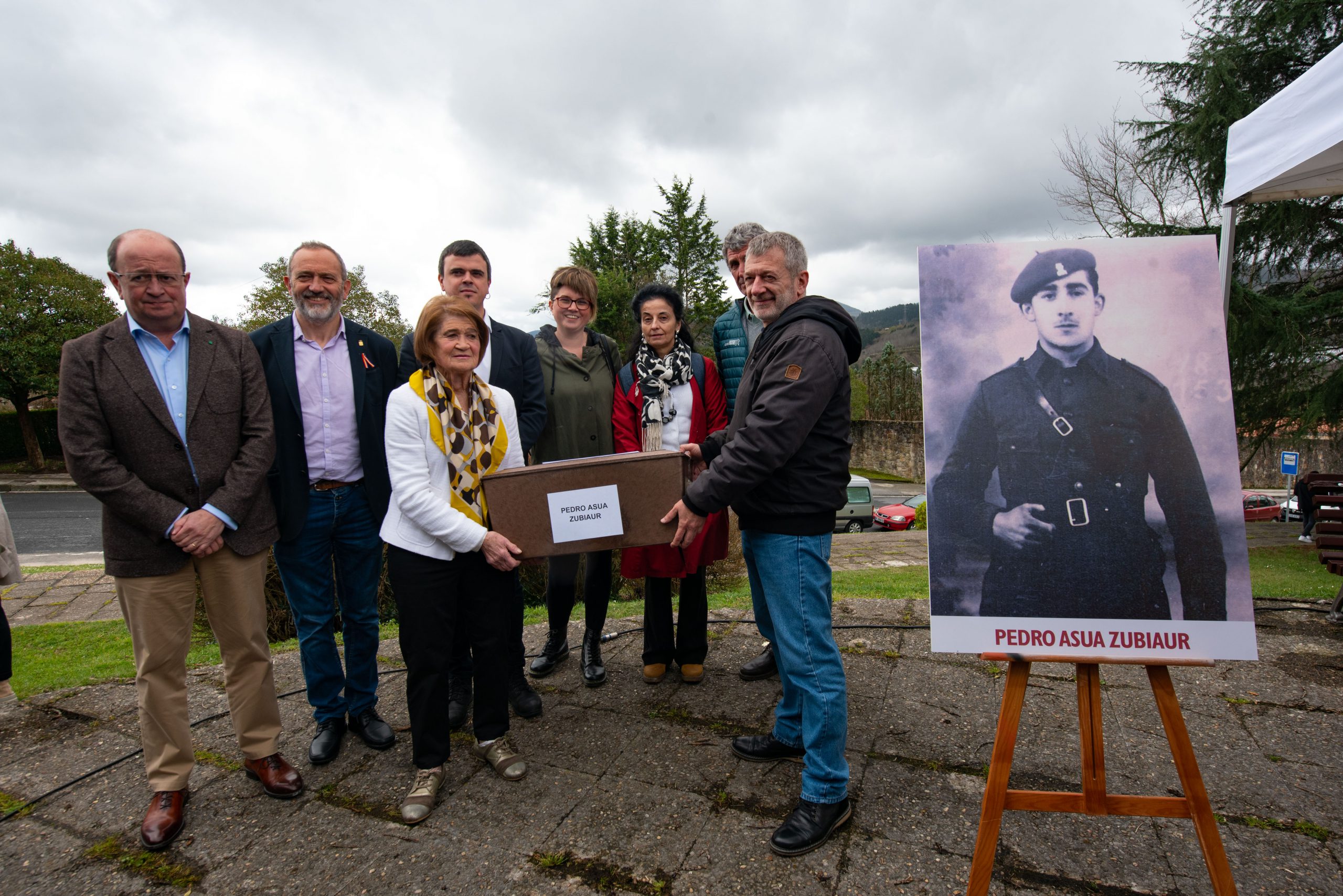 • Memoria, Giza Eskubide eta Lankidetzarako sailburuorde José Antonio Rodríguez Ranzek eta Galdakaoko alkate Iñigo Hernandok Pedro Asua milizianoaren gorpuzkiak familiari emateko ekitaldian parte hartu dute