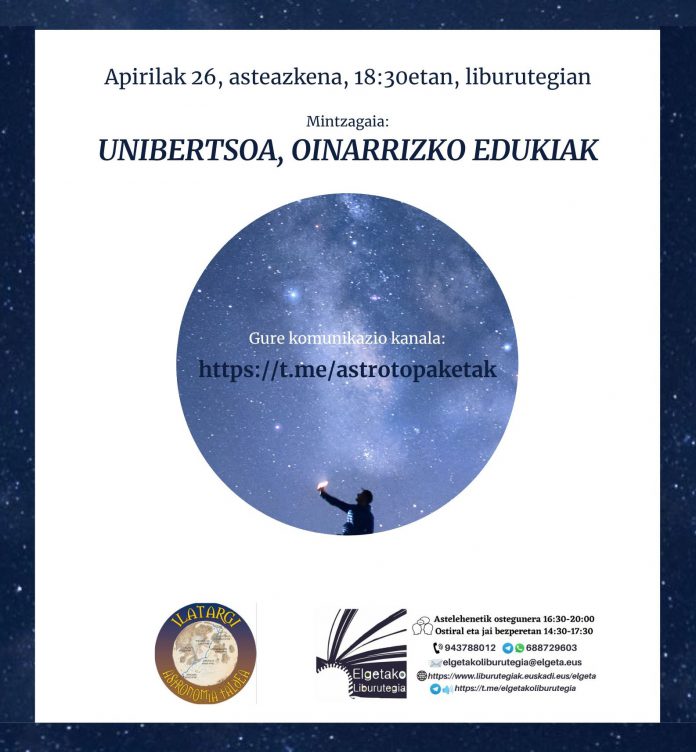 Astrotopaketak dinamikara hurbildu direnen iritziak jasota, apirileko Astrotopaketako mintzagaia «Unibertsoa, oinarrizko edukiak» izango da.