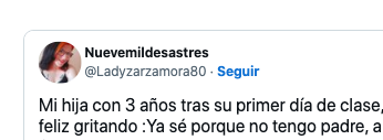 Mi hija con 3 años tras su primer día de clase, entró en casa feliz gritando :Ya sé porque no tengo padre, a M. le tocaron 2!!!