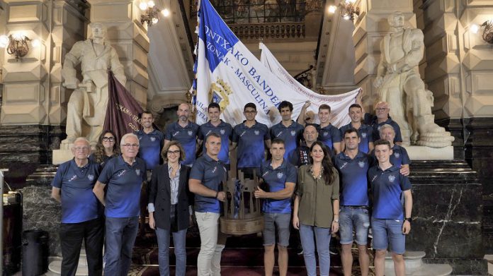 La Diputada General de Bizkaia, Elixabete Etxanobe, ha recibido en el Palacio Foral a los remeros y miembros del cuerpo técnico y de la directiva de Urdaibai, en un acto para reconocer sus triunfos en la Liga Eusko Label, en La Concha y en los campeonatos de traineras de Euskadi y de Bizkaia.