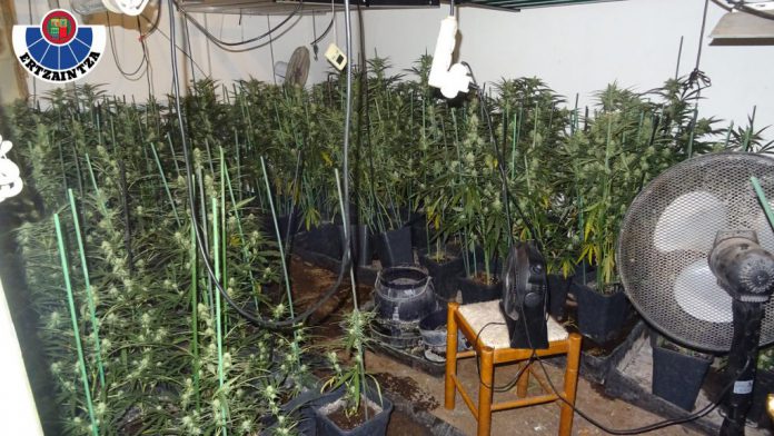 El pasado jueves, se constató que dicha vivienda era utilizada para el cultivo ilegal de esta sustancia. En la inspección llevada a cabo ese día, fueron halladas más de 450 plantas en diferentes fases de crecimiento distribuidas por varias de las habitaciones de la casa, la cual estaba provista de los sistemas y medios técnicos necesarios para el desarrollo de las plantas. Además, fue hallado alrededor de un kilogramo de marihuana en seco, en varias bolsas de plástico.