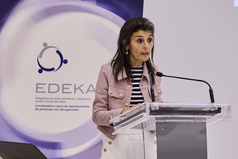Hitzaldian, sailburuak NBEren Pertsona Ezinduen Eskubideei buruzko Konbentzioari buruz hitz egin du, eta honako hau adierazi du: “giza eskubideetan oinarritutako inklusioa lortzeko eredua da, eta gure ekintza eta politika publiko guztiak gidatu behar ditu”.