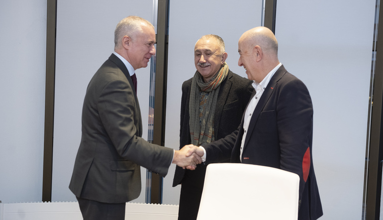 Lehendakariak Pepe Álvarez UGTko idazkari nagusia hartu du gaur arratsaldean Lehendakaritzan. Bertan izan da Raúl Arza Euskadiko sindikatuaren idazkari nagusia ere.