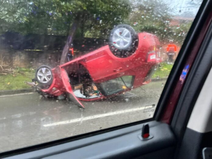 Ayer al mediodía un coche volcó en la avenida Alcalde José Elosegi de Donostia, entre el alto de Miracruz y Ategorrieta. Afortunadamente su conductor, un hombre de 30 años, pudo salir por su propio pie. A pesar de ello, fue atendido en el lugar por los servicios sanitarios y fue trasladado al Hospital Donostia por dolencias en un brazo.