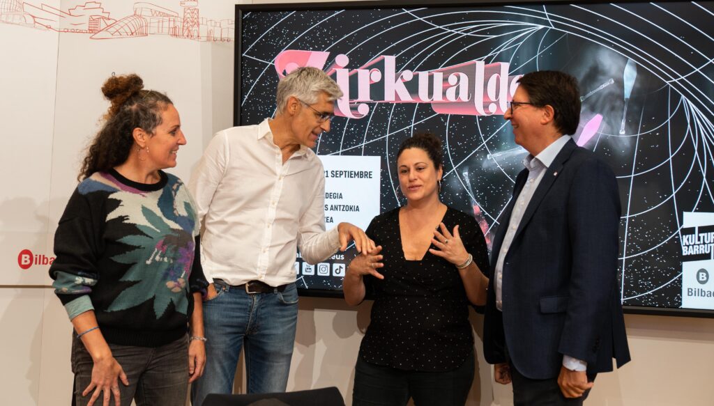 El Concejal de Cultura y Gobernanza, Gonzalo Olabarria, ha presentado, esta mañana en rueda de prensa, estos cuatro hitos importantes para la ciudad, acompañado por Gloria Peón, artista de circo y acróbata aérea y directora de la compañía La Glo Zirko eta Dantza –co organizadora del II Encuentro de Danza Vertical–; y Rosa Colell, Coordinadora en CircoRED. En representación del proyecto de EKO- Pirineos de Circo, ha tomado la palabra, Pedro Ormazabal, programador del Área de Cultura del Consistorio. Olabarria ha agradecido que Bilbao haya sido escogida como sede de estos encuentros profesionales y también ha recordado los 15 años de trayectoria del único Festival en Euskadi especializado en artes circenses, como es Zirkualde.