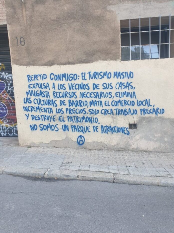 Las protestas contra la masificación turística de la capital guipuzcoana son cada vez más habituales. Prueba de ello son las pintadas que van apareciendo en distintos rincones de la ciudad. El usuario de la red social X, Donostia Bai @Erramun2014 ha recogido una de ellas en una publicación que está siendo muy compartida.
