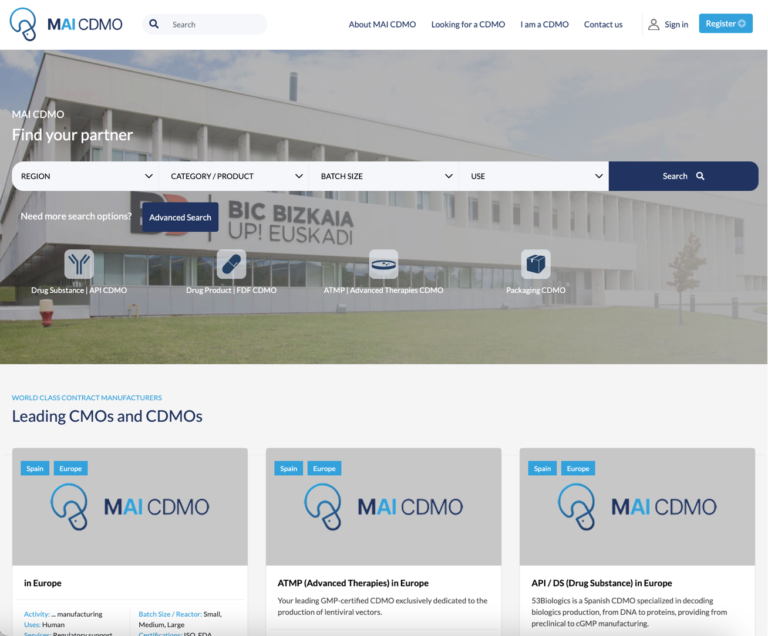 MAI CDMO, www.mai-cdmo.com webgunean aurkitu daitekeen B2B plataforma, enpresa farmazeutikoek eta bioteknologikoek farmakoak garatzeko prozesua bizkortzea ahalbidetzen du, beren proiektuekin bateragarriak diren kontratu bidezko garapen eta fabrikazio-erakundeekin (CDMO/CMO) konektatuz. “Gure helburua bilaketa eta kontratazio prozesua sinplifikatzea eta bizkortzea da, konpainia farmazeutikoak eta fabrikatzaileak hobekien egiten dakitenean kontzentratzea ahalbidetuz: berritzea eta haztea”, nabarmentzen dute sustatzaileek.