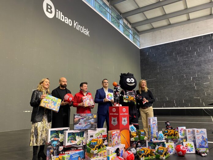Bizkaiko kirolak bat egin du gizarte-zailtasunak dituzten 1.500 haurrentzako 3.500 jostailu biltzeko. Josu Perón, Bizkaiko Gurutze Gorriko presidentea; Itxaso Erroteta, Bilboko Udaleko Gazteria eta Kirol zinegotzia; Isabel Iturbe, SURNE Bilbao Basketeko presidentea; Galder Reguera, Athletic Club fundazioko proiektu arduraduna; eta Metro Bilbaoren zuzendaria, Eneko Arruenabarrena, izan dira gaur goizean Esperantza pilotalekuan, “Haien eskubideak jokoan” kanpaina solidarioa aurkezteko. Kanpaina horren bidez, Gazteen Gurutze Gorriak jostailu berriak biltzen ditu Gabonetan Bizkaian.