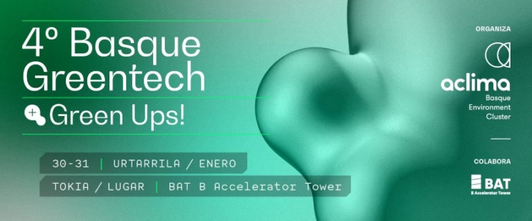 Euskadiko ingurumen industrien kluster elkarteak (Aclima) 4. Basque Greentech eta lehen aldiz Green UPS! foroa ospatuko du urtarrilaren 30ean eta 31n Bilboko BAT B Accelerator Towerren. Ekitaldiak bi egunez bilduko ditu Euskadiko ingurumen arloko ekosistema berritzaileak, sendoenetatik hasi (zentro teknologikoak, sektoreko enpresa erreferenteak edo erakunde publikoak) eta azken urteetan hazkunde potentzial handiena metatu dutenetaraino (enpresa emergenteak).