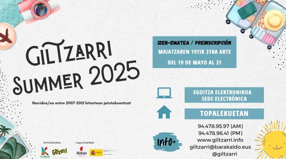 Udako jardueren gazteentzako gunea «Giltzarri Summer 2025» da, eta aisialdiko, abentura anitzeko eta kiroletako hainbat jarduera biltzen ditu. Horrez gain, aldez aurretik izena eman beharko duten txangoak eta irteerak ere baditu. 2007 eta 2013 urteen artean jaiotako gazteek parte hartu ahal izango dute.