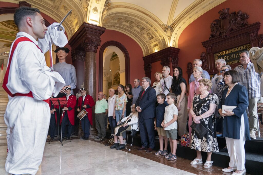 Todos ellos han sido los protagonistas de la Recepción oficial presidida por el Alcalde y miembros de la corporación municipal en esta celebración del 725 cumpleaños de Bilbao, donde han recibido como obsequio una figura de Don Diego López de Haro, fundador de la Villa.