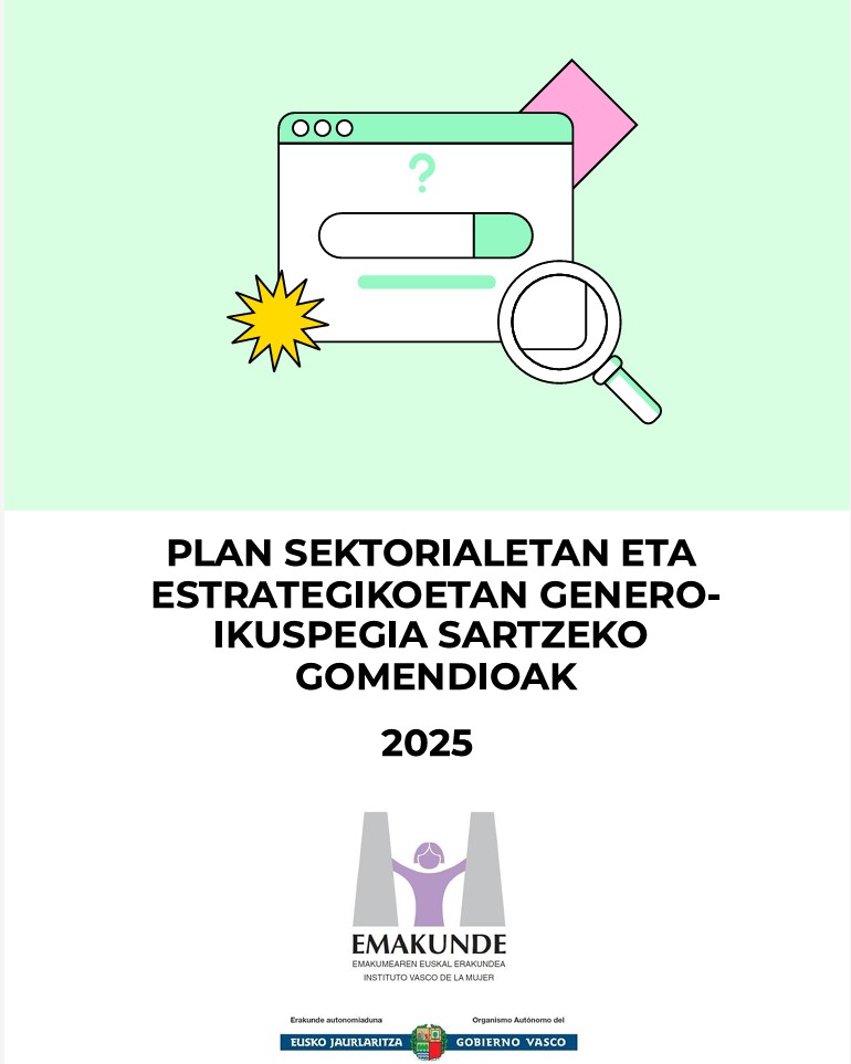 Emakundek «Plan sektorialetan eta estrategikoetan genero-ikuspegia sartzeko gomendioak» dokumentua argitaratu du, administrazio publikoetan plan sektorialak eta estrategikoak abian jartzeko eta garatzeko prozesuen buru izango diren pertsonei laguntza eskaintzeko helburuaz.
