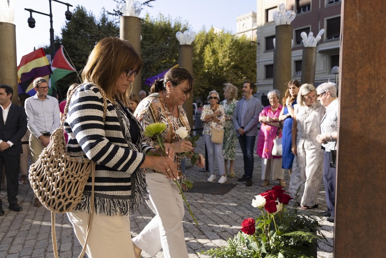 Omenaldian «Agur Jaunak» interpretatu da eta bertaratuek lore-eskaintza egin dute «In Memoriam» monolitoaren aurrean, gerra zibilean eta diktadura frankistan eraildako pertsonen izenekin.