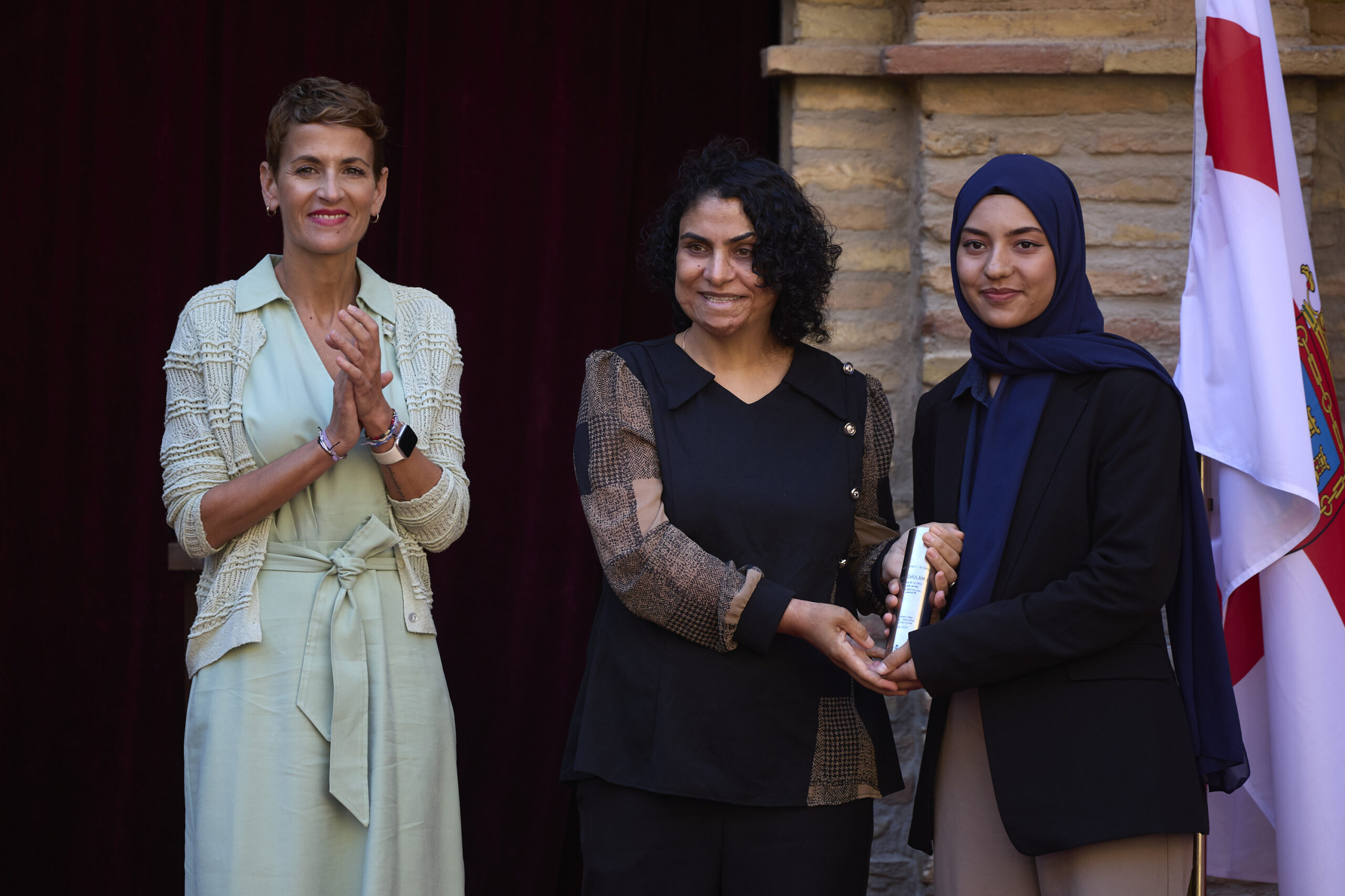 María Chivite Navascués Nafarroako Lehendakariak Nafarroako Gobernuaren errekonozimendua helarazi dio Nadia Ghulami gaur goizean Tuteran, bakearen eta genero berdintasunaren aldeko hezkuntzaren alde Afganistango emakumeekin egindako lanagatik. Ghulamek Zuhal Sherzad lankidearekin batera jaso du saria; biek, ‘Ponts per la Pau’ GGKEan (bakearen aldeko zubiak) lan egiten dute giza eskubideen eta hezkuntzaren defentsan.