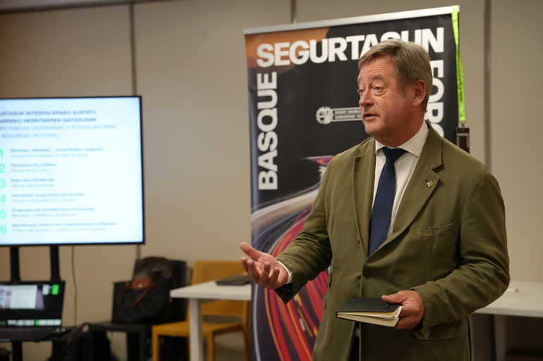 Bingen Zupiria Segurtasuneko sailburuak, Ricardo Ituarte Segurtasuneko sailburuordeak eta Asier Erkoreka Segurtasuna Koordinatzeko zuzendariak lagunduta, Ezkerraldeko Basque Segurtasun Foroan parte hartu du gaur, Barakaldon. Gaurko jardunaldi parte-hartzailean Sestao, Barakaldo eta Trapagarango gizarteko 40 ordezkari inguruk segurtasunari buruzko hausnarketa egin dute ikuspegi integral batetik eta etorkizuneko erronkei buruz.