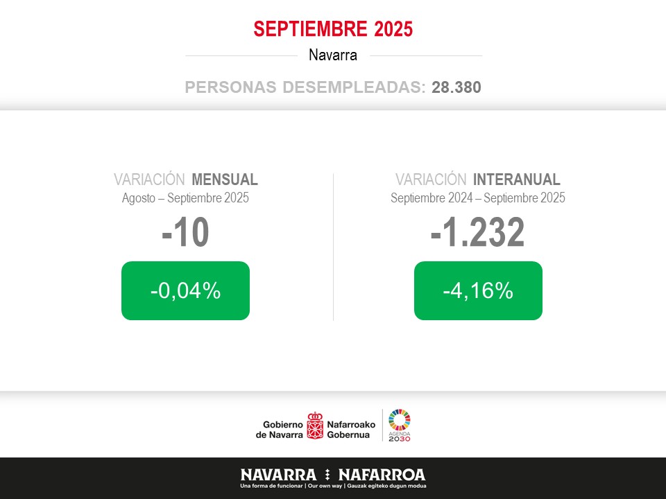 Irailean erregistratutako langabeziaren jaitsierak, 10 langabe gutxiago, hileko -%0,04ko jaitsiera dakar, eta urteko terminoetan, berriz, 2024ko irailean baino -%4,16. 28.380 pertsona daude langabezian. Beraz, 2008ko amaieraren antzeko langabezia-mailak ezarri dira.