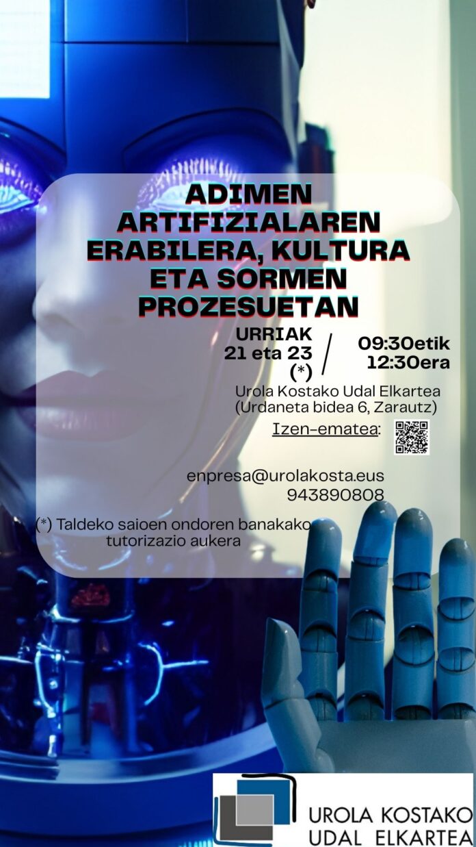 Urola Kostako Udal Elkarteak Adimen artifiziala erabiltzeko ikastaroa antolatu du, baina, kultura eta sormen prozesuei bideratuta. Eskualdeko kultura eta sormen alorreko eragileek, beraz, aukera izango dute AAren jakintza orokorrei, erabilpen desberdinei edota etika eta legediari buruzko irakaspenak jasotzeko.