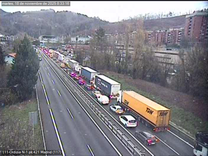 Importantes retenciones en la N-1 tras un accidente entre un camión y una furgoneta en Legorreta