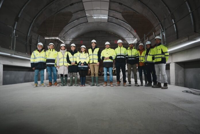 Susana García Chueca Mugikortasun Jasangarriaren sailburua, Jon Insausti Donostiako alkatea, Miguel Ángel Páez Azpiegitura eta Mugikortasun Jasangarriaren sailburuordea eta Antonio López ETSko zuzendari nagusia haitzulo barrura joan dira astelehen honetan, lanen egoera bertatik bertara ezagutzeko.