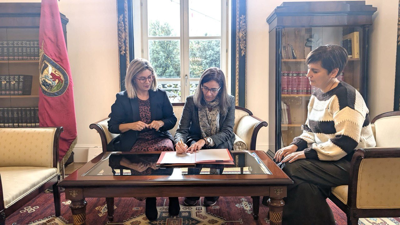 Leire Corrales Eusko Jaurlaritzako Gobernantza, Administrazio Digital eta Autogobernu Sailaren erakunde autonomoa den Administrazio Publikoaren Euskal Institutuaren (IVAP) zuzendariak eta Irma Basterra Batzar Nagusietako lehendakariak lankidetza-hitzarmena sinatu dute gaur hizkuntza-prestakuntza eta normalizazioaren arloan.