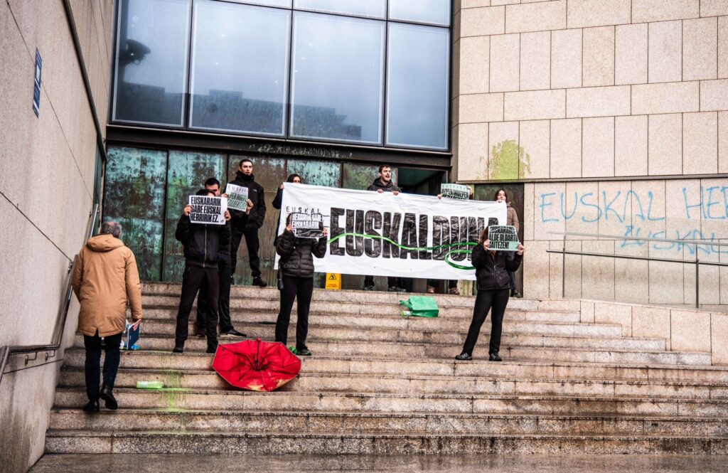 La Ertzaintza ha abierto diligencias contra nueve jóvenes que participaron ayer miércoles en una protesta no autorizada frente a los juzgados situados en la Plaza Teresa de Calcuta, en la capital guipuzcoana. El grupo lanzó pintura contra la fachada del edificio e impidió el acceso de varias personas al interior durante el transcurso de la concentración. Ernai ha publicado un vídeo en sus redes sociales mostrando estos hechos.