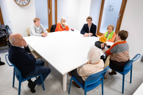 Jon Insausti Donostiako alkatea Jatorra erretiratuen elkartearen lokalean izan da, egoera zaurgarrian dauden adinekoentzako Goizaldiak eguneko udal arreta-zerbitzura astero joaten diren pertsonekin hitz egiteko.