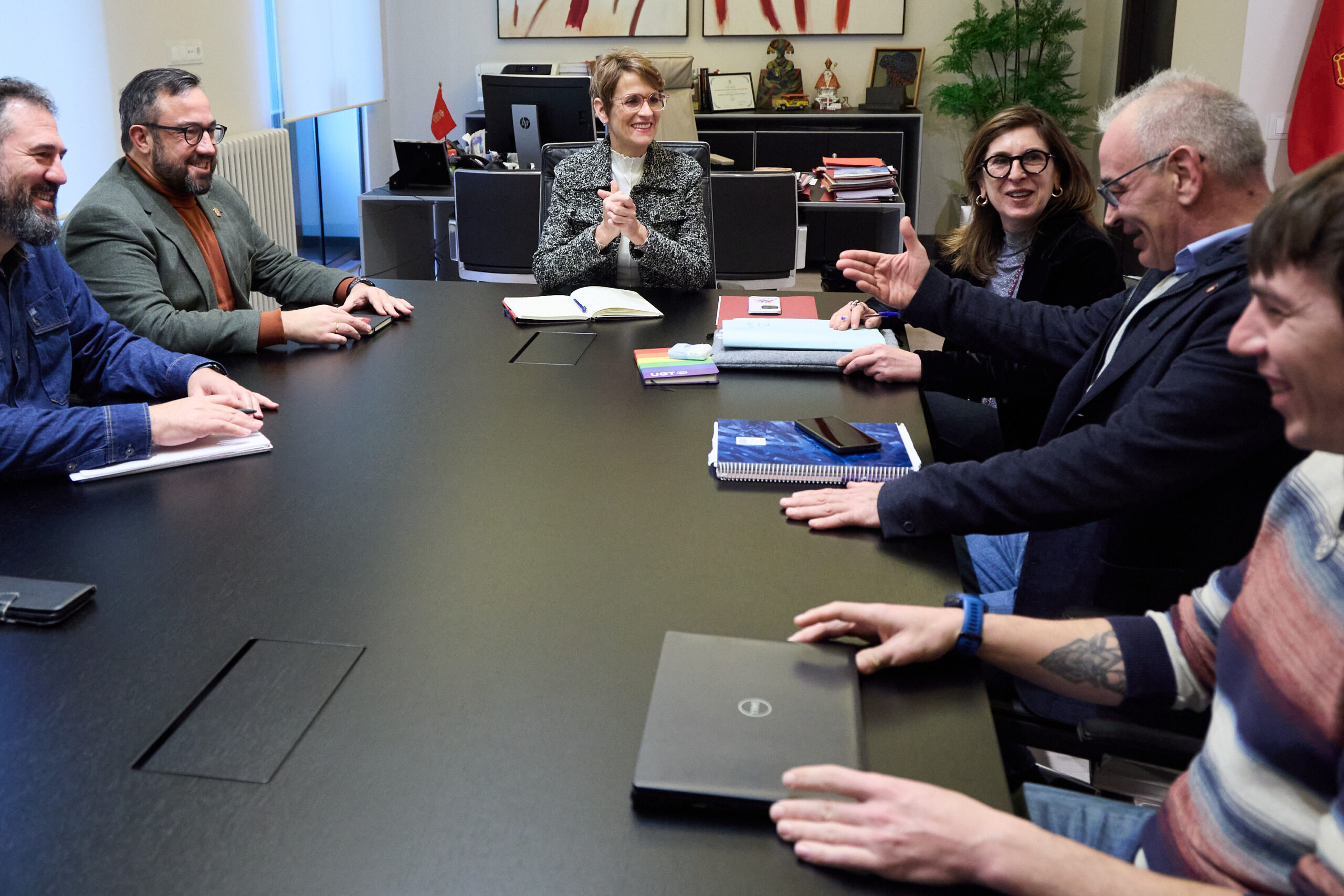 Maria Chivite Navascues Nafarroako Lehendakariak eta Javier Remirez Gobernuko lehen lehendakariordeak bilera egin dute gaur goizean UGT konfederaleko ordezkariekin, eta bat etorri dira politika aurrerakoiak eta elkarrizketa soziala koordinatzearen garrantziaz, gehiengoarentzat aurrerapausoak lortzeko.