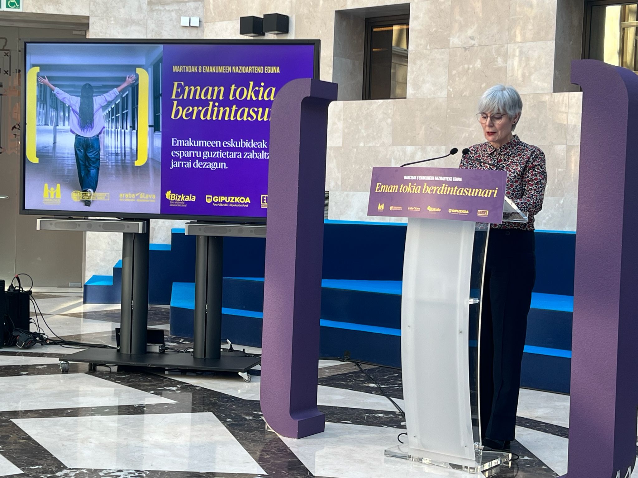 «Eman tokia berdintasunari» da Emakundek, hiru foru-aldundiek eta EUDELek bultzatu duten martxoaren 8ko erakundeen arteko kanpainaren leloa. Kanpaina bizitzako eremu guztietan berdintasunezko guneak defendatzeko eta zabaltzeko gonbita da, berdintasuna ez baita lorpen bermatua, zaindu eta babestu beharreko espazioa baizik.
