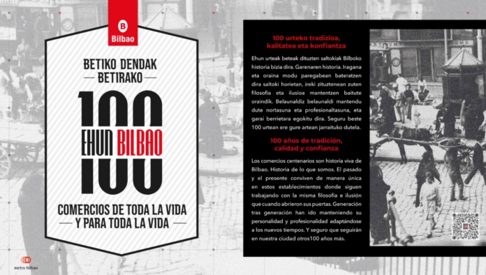 - La iniciativa, compuesta por 16 paneles que incorporan 45 imágenes de establecimientos centenarios, forma parte de la estrategia municipal de apoyo al comercio local, siendo además un agradecimiento y homenaje a las personas comerciantes de Bilbao.