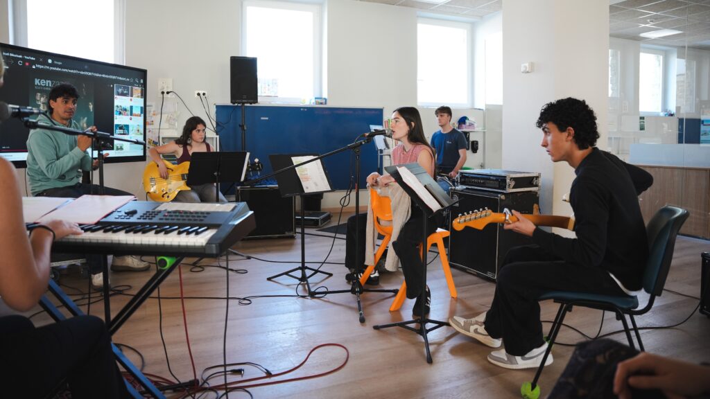 La estancia finalizará mañana, 10 de abril, con un concierto especial en Zornotza Aretoa, gracias a la colaboración del Ayuntamiento de la localidad que cede el espacio para este evento. Allí demostrarán todo lo aprendido durante toda la semana junto al profesorado y mostrarán su creatividad y trabajo en equipo en un gran concierto.